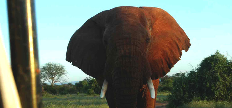 The other day, we were also briefly charged by an animal whom Jerenimo could not immediately recognize. He was showing signs of musth, and towered at us for a split second like a mushroom cloud. Though we were quick to accelerate away, instead of sitting at a distance and watching sensibly, I was quite baffled when a second later I found dear Jeronimo was reversing us back at him. I was particularly impressed given that there are the mangled remains of a previous Toyota at the entrance to camp as a monument to the might of a mature bull in musth. But my faith in Jeronimo’s experience, and concentration on taking pictures of his ears for identification, dispelled any nervousness. Fortunately, the mystery bull chose to pace away from us.