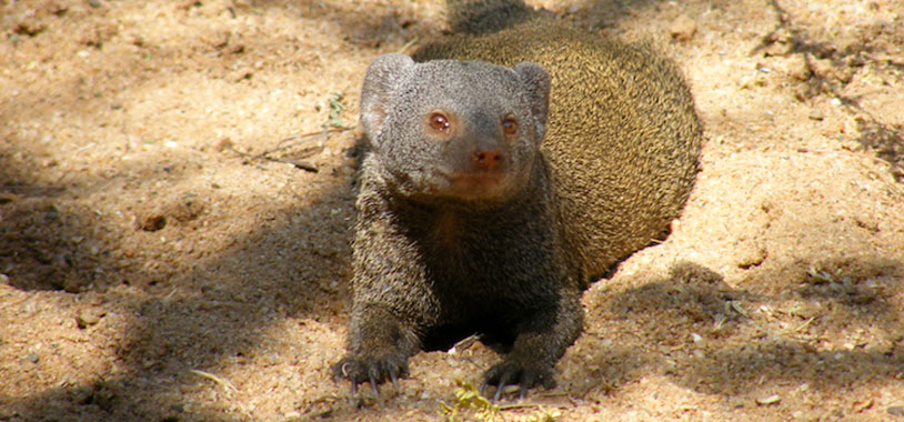 A dwarf mongoose searches for some leftover lunch.